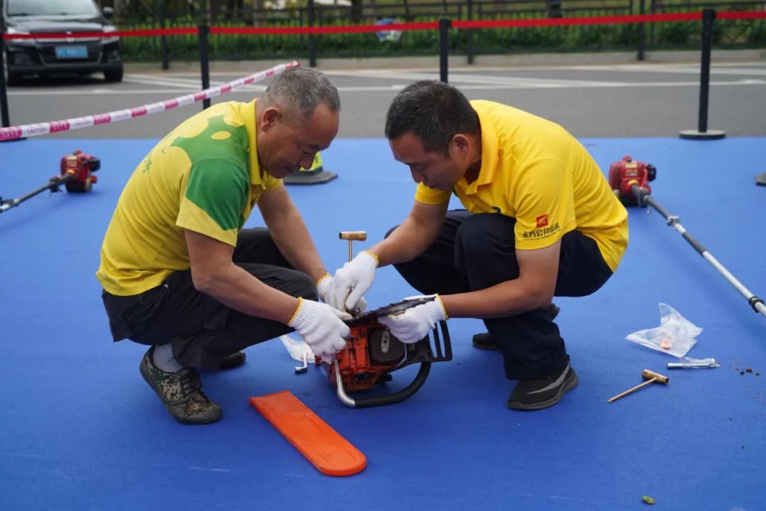 賽場另一邊,綠化組的參賽選手們對黃金榕巧妙構(gòu)思,修剪出一個(gè)個(gè)頗具觀賞價(jià)值的植物造型。在“器械拆裝”比拼中,選手們根據(jù)器械特點(diǎn),熟練地完成了長、短油鋸拆裝,現(xiàn)場氣氛緊張而熱烈。
