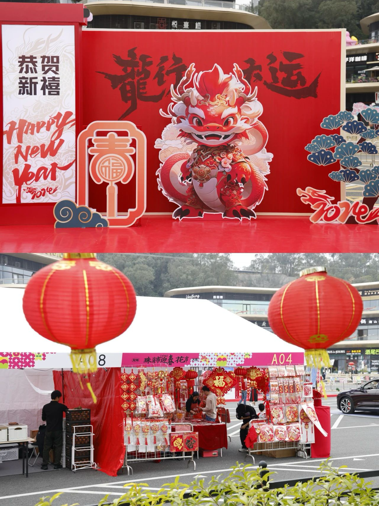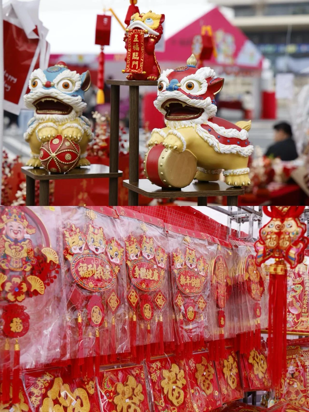 入目皆是琳瑯滿目的大紅燈籠、福畫(huà)、春聯(lián)、紅包封、