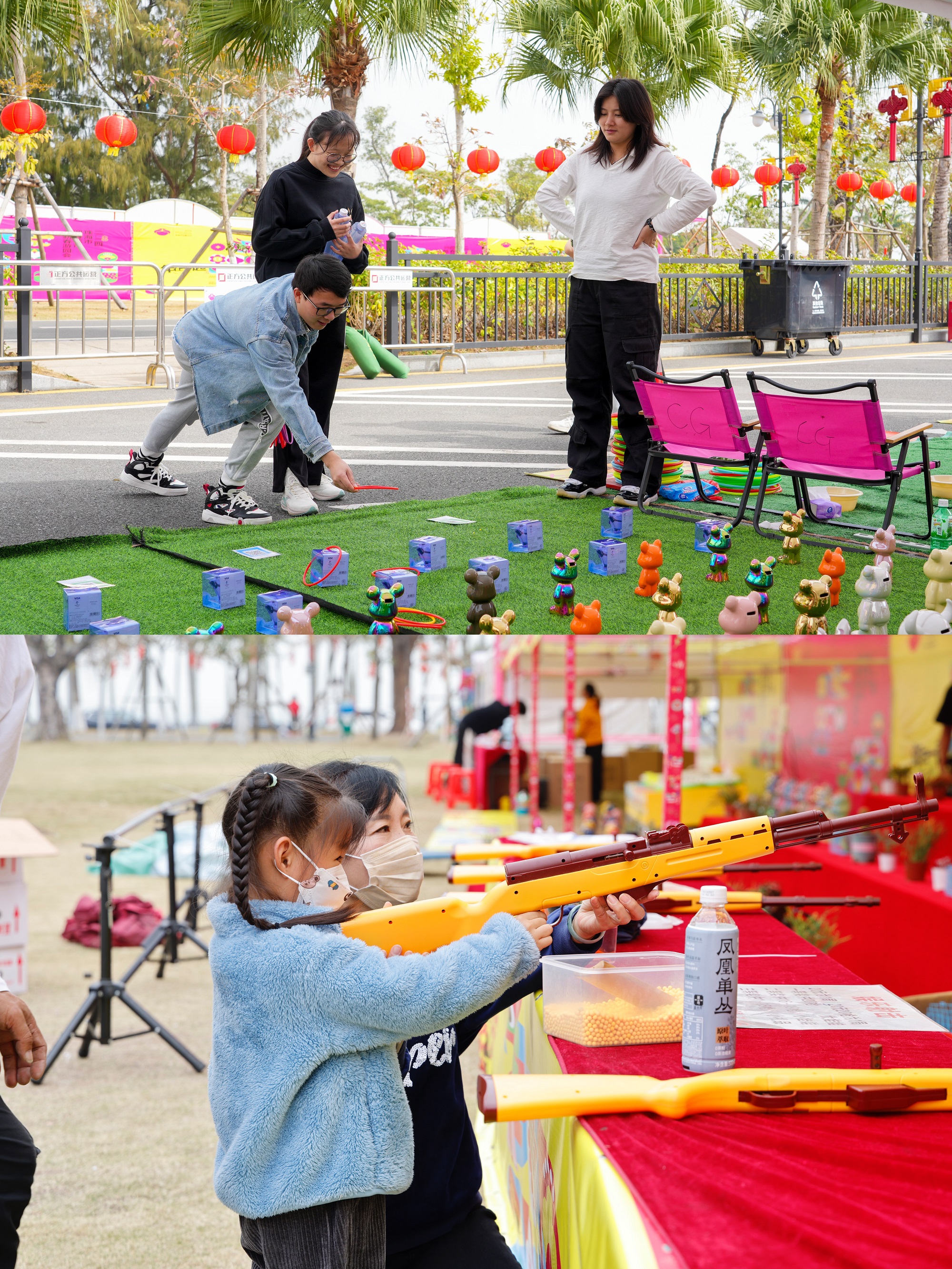 有的居民在套圈圈游戲中大展身手,成功套中了心儀的禮品;