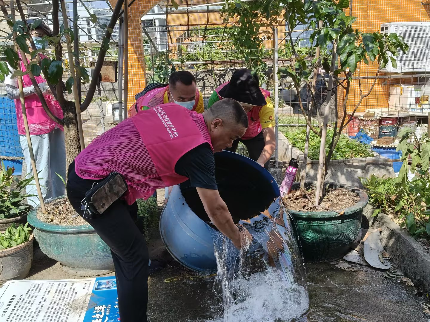 同步,開展“地毯式”環(huán)境整治,推動形成 “人人參與、人人盡責(zé)” 的防控氛圍,齊心協(xié)力翻盆倒罐清積水、清理垃圾雜物,集中排查清理社區(qū)綠化帶、下水道等蚊蟲孳生地百余處,切實降低社區(qū)蚊媒密度,有效提升環(huán)境衛(wèi)生水平。