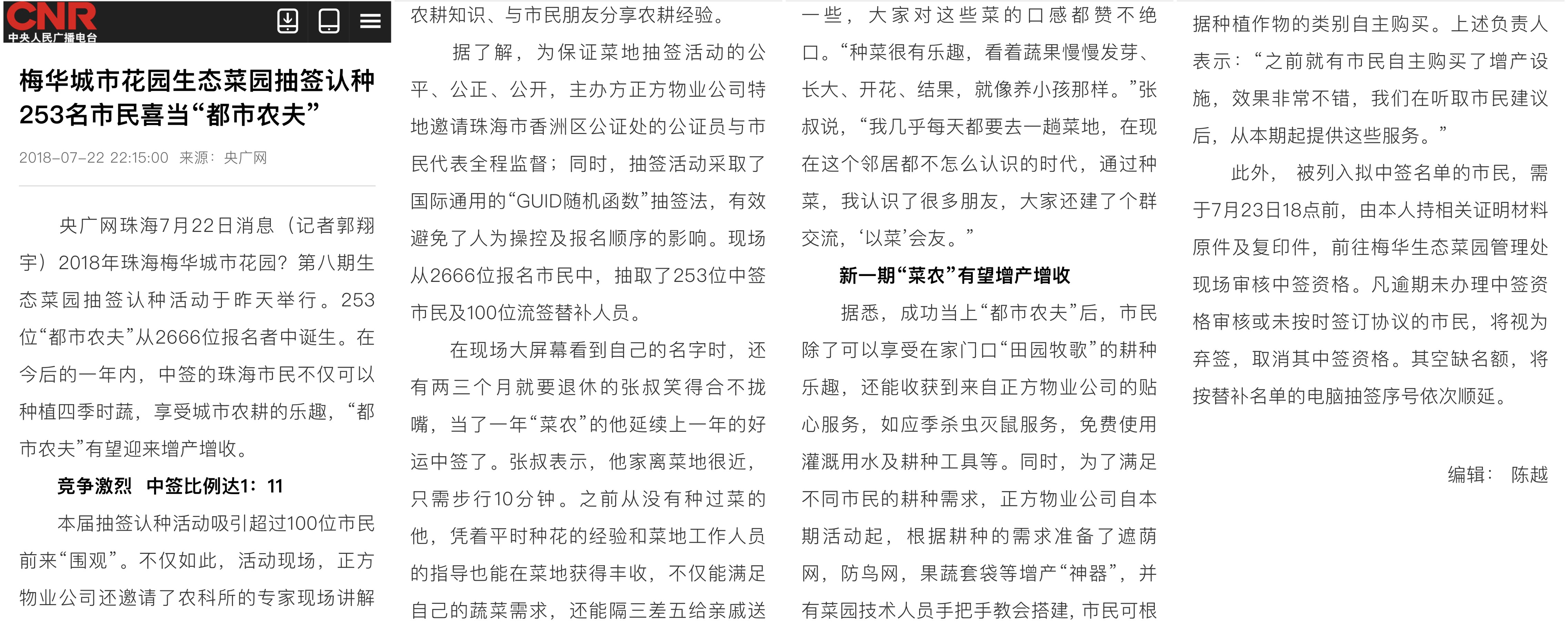 2018年珠海梅華城市花園?第八期生態(tài)菜園抽簽認(rèn)種活動于昨天舉行。253位“都市農(nóng)夫”從2666位報名者中誕生。在今后的一年內(nèi),中簽的珠海市民不僅可以種植四季時蔬,享受城市農(nóng)耕的樂趣,“都市農(nóng)夫”有望迎來增產(chǎn)增收。