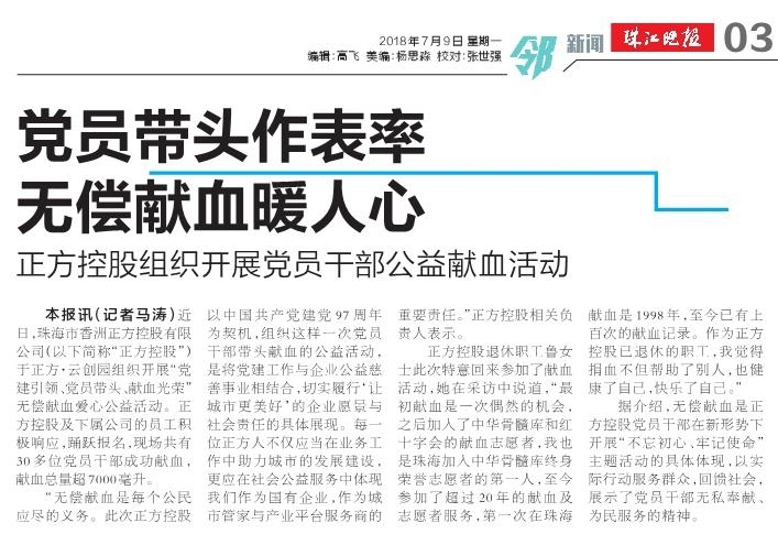 據(jù)介紹,無償獻血是正方控股黨員干部在新形勢下開展“不忘初心、牢記使命”主題活動的具體體現(xiàn),以實際行動服務群眾,回饋社會,展示了黨員干部無私奉獻、為民服務的精神。
