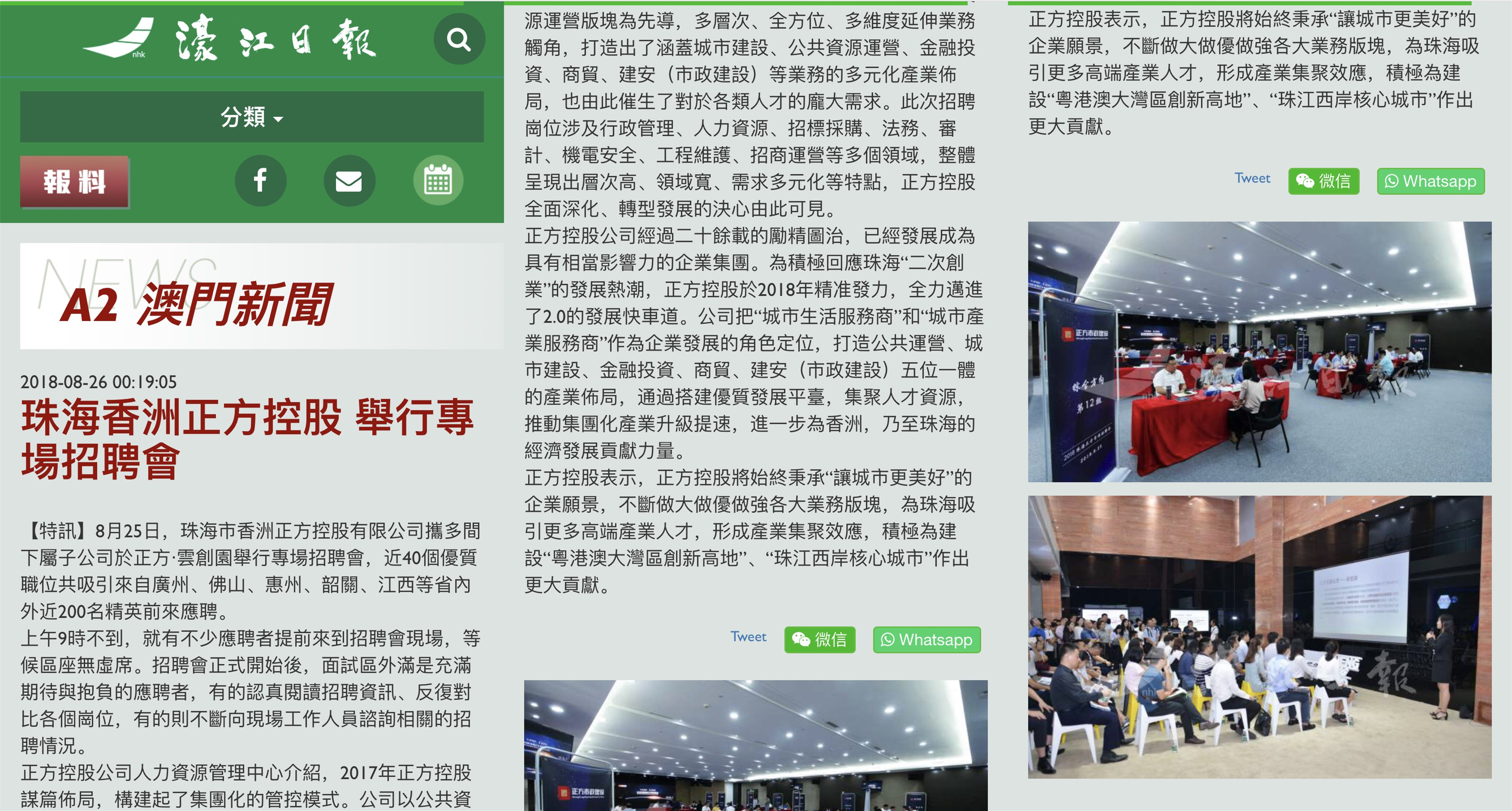 【特訊】8月25日,珠海市香洲正方控股有限公司攜多間下屬子公司于正方?云創(chuàng)園舉行專場招聘會(huì),近40個(gè)優(yōu)質(zhì)職位共吸引來自廣州、佛山、惠州、韶關(guān)、江西等省內(nèi)外近200名精英前來應(yīng)聘。