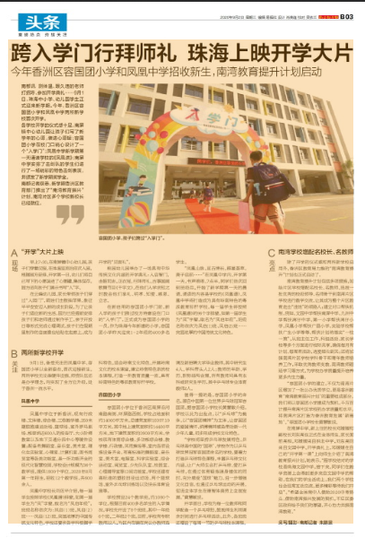 除了開(kāi)學(xué)的儀式感和兩所新學(xué)校啟用外,香洲區(qū)教育局力推的“南灣教育提升”計(jì)劃也正式啟動(dòng)了。
