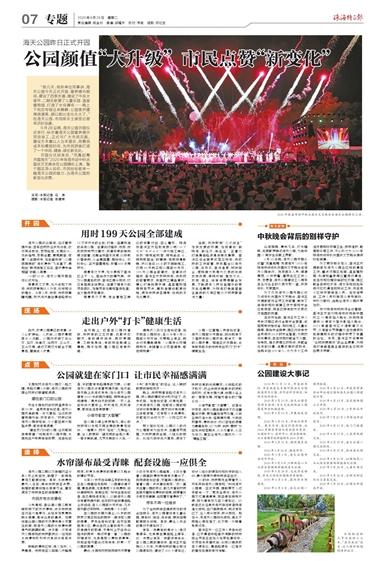 “前幾天,我聽(tīng)單位同事講,海天公園今天正式開園,管養(yǎng)提升期間,建設(shè)了四季步道、鋪設(shè)了中央大草坪,二期還新建了兒童樂(lè)園、溫室植物園、打造了水簾瀑布……晚上下班后專程過(guò)來(lái)瞧瞧,公園果然建得很漂亮,跟以前比變化太大了。”在海天公園,市民陳女士接受記者采訪時(shí)說(shuō)道。