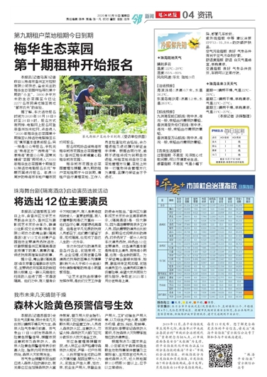 據(jù)了解,本次活動報名時間為2020年10月18日9時至24日9時。報名方式有兩種:電腦網(wǎng)上報名可登錄香洲飯米粒網(wǎng),點擊進入“2020年梅華生態(tài)菜園第十期抽簽認種活動電腦抽簽系統(tǒng)”填寫基本信息和報名;另一種是公眾號報名,手機關(guān)注“珠海正方”“游珠?!薄皹废碇楹!蔽⑿殴娞?,回復關(guān)鍵詞“菜園”即可進入“2020年梅華生態(tài)菜園第十期抽簽認種活動電腦報名系統(tǒng)”專題頁面進行報名。年滿18周歲的珠海市本地戶籍市民均可報名。