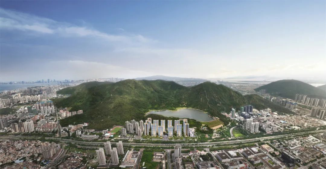在大師團(tuán)隊(duì)的妙筆下,整個(gè)項(xiàng)目規(guī)劃建設(shè)7棟塔樓、8棟板樓、15棟疊墅,高層圍繞南面的黑白面將軍山和南屏水庫(kù)形成為圍合之勢(shì),將面寬1000m的湖景和5000m的山景資源最大化,實(shí)現(xiàn)建筑與外部環(huán)境的融合協(xié)調(diào)。