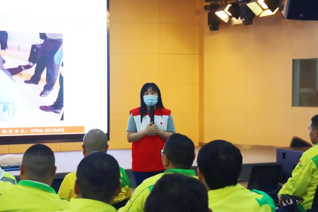 在紅十字會(huì)講師的詳細(xì)講授下,參訓(xùn)人員學(xué)習(xí)了救護(hù)的目的、原則以及日常生活中遇到氣道異物阻梗、心臟驟停、創(chuàng)傷等緊急情況下的應(yīng)急救護(hù)技能等基礎(chǔ)理論知識(shí)。