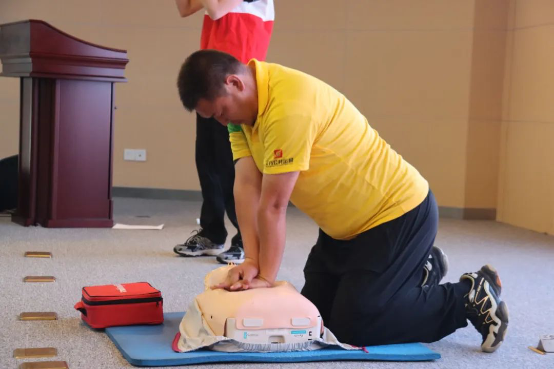 講師們還通過(guò)現(xiàn)場(chǎng)實(shí)操,講授了突遇心臟驟停情況下進(jìn)行心肺復(fù)蘇及使用AED的方法。參訓(xùn)人員積極參與互動(dòng)和模擬練習(xí),進(jìn)一步加深了對(duì)急救知識(shí)的理解和運(yùn)用,實(shí)現(xiàn)了理論學(xué)習(xí)和實(shí)踐應(yīng)用的有效結(jié)合。