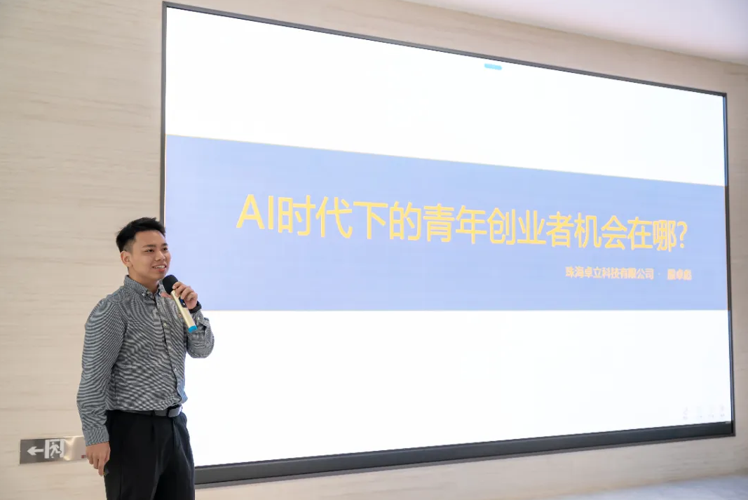 結(jié)束參觀后,青年們來到17棟2樓路演廳集中開展活動,活動首先由香洲區(qū)國資團工委書記張曌、正方集團團委書記陳熙致辭。隨后,由卓立科技公司總經(jīng)理殷卓彪先生與青年們進行分析,殷總以其創(chuàng)業(yè)經(jīng)驗和在科技領域取得的成就,就“如何在創(chuàng)業(yè)道路上堅持自我、實現(xiàn)突破”和青年們進行了交流探討。